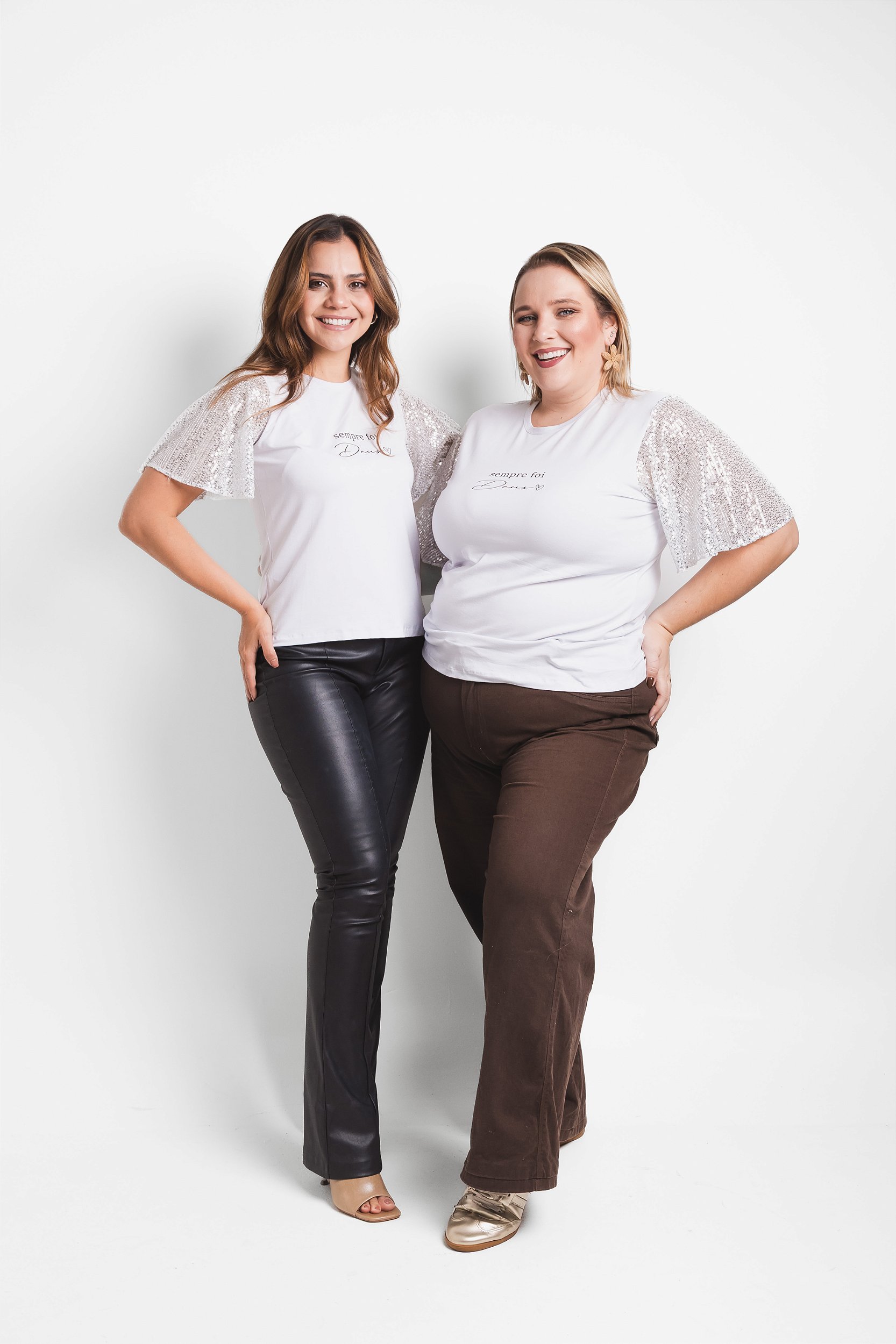*A estamparia é feita por utilização de tinta a base d’água, com alguns diferenciais que compõem a estampa, peças com strass, bordadas, silk em alto relevo e aplicações.